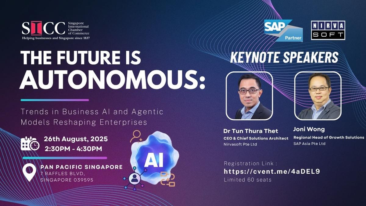 On 26 August 2025, Nirvasoft was proud to participate in “The Future is Autonomous: Trends in Business AI and Agentic Models Reshaping Enterprises” at the Pan Pacific Hotel, organized by the Singapore International Chamber of Commerce (SICC).
